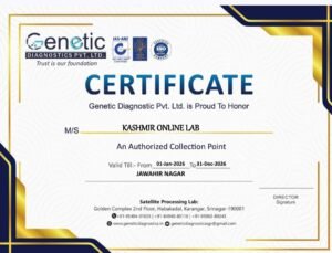Backed by the technical expertise of Genetic Diagnostics, we combine state-of-the-art medical technology with the warmth of personalized care. Whether you are in Srinagar or surrounding districts, our mission is to ensure that quality pathology services are accessible to every family in the valley.