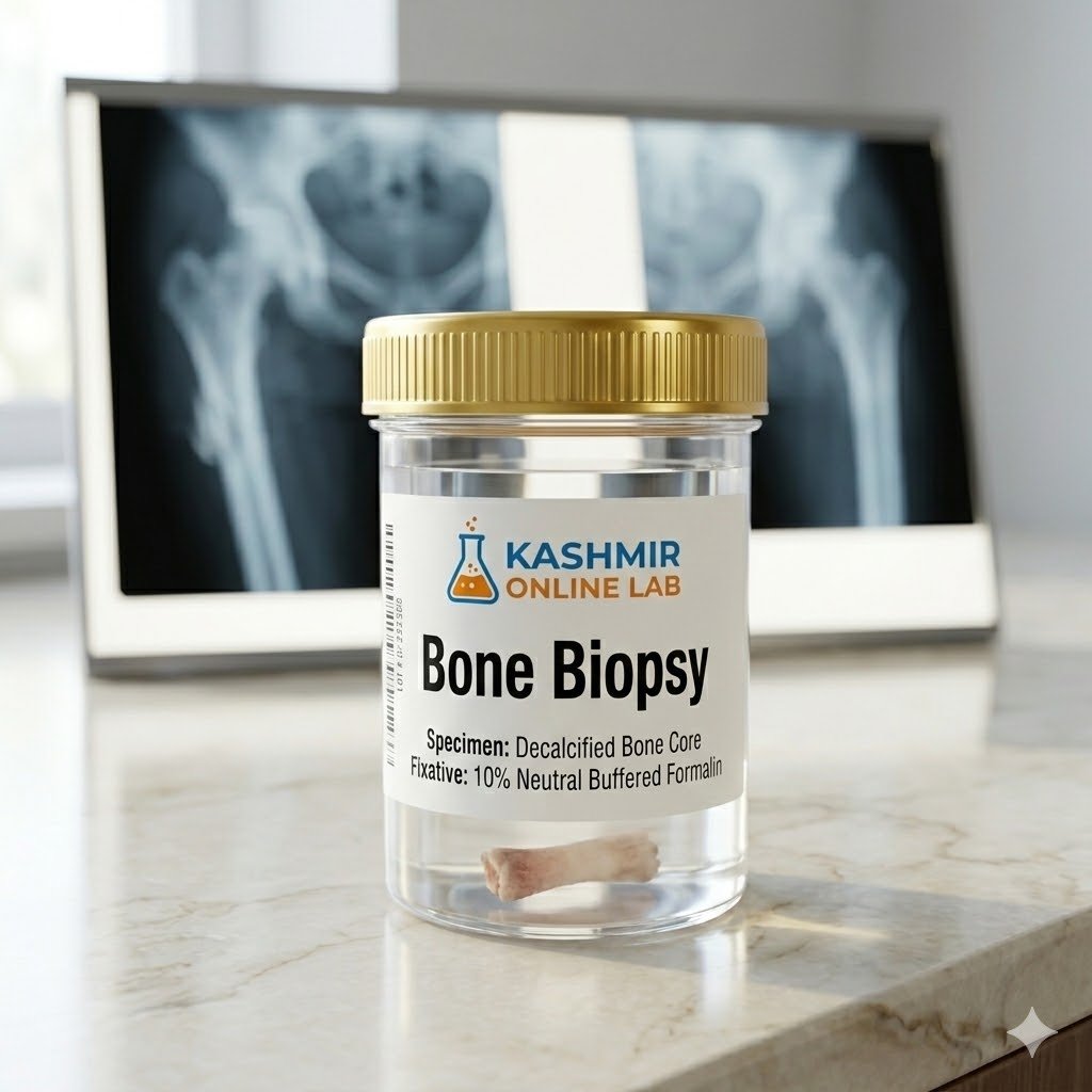 A Bone Biopsy is a specialized laboratory procedure where a sample of bone tissue is examined under a microscope. It is used to diagnose bone cancers, severe bone infections (osteomyelitis), or metabolic bone disorders.